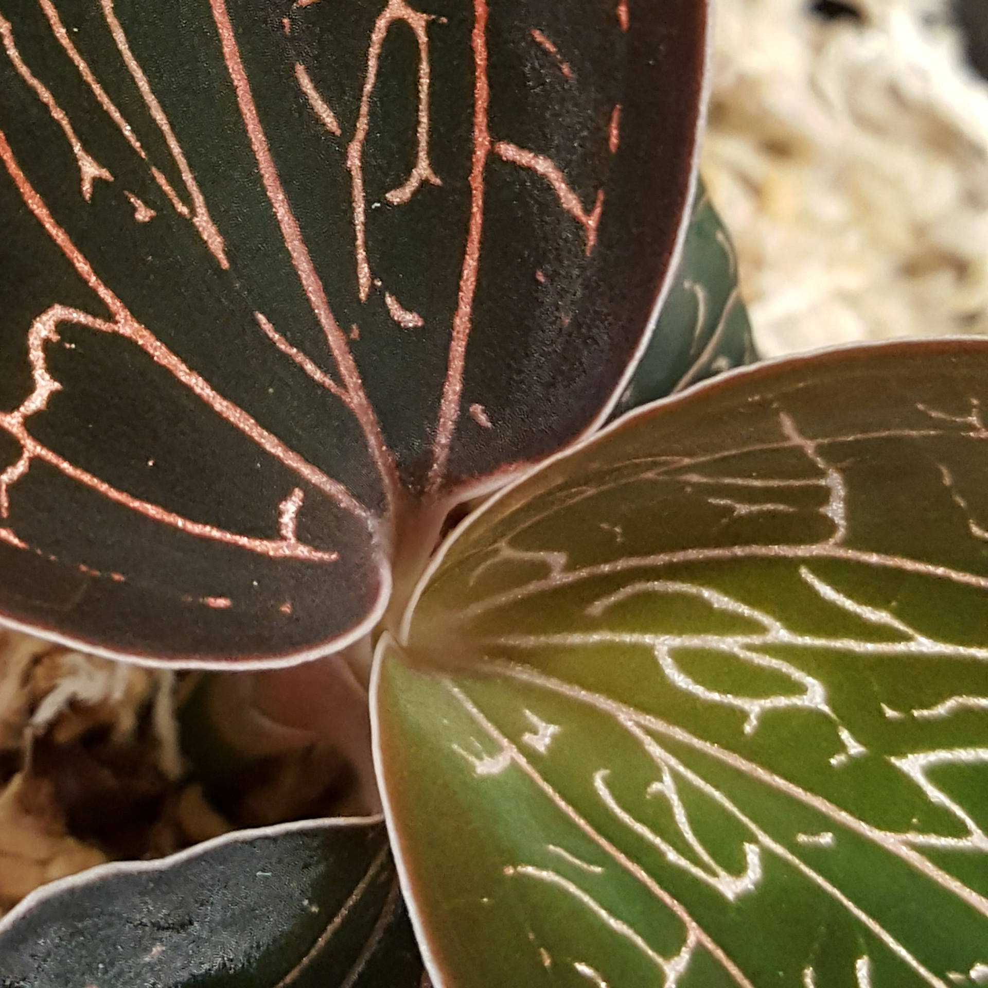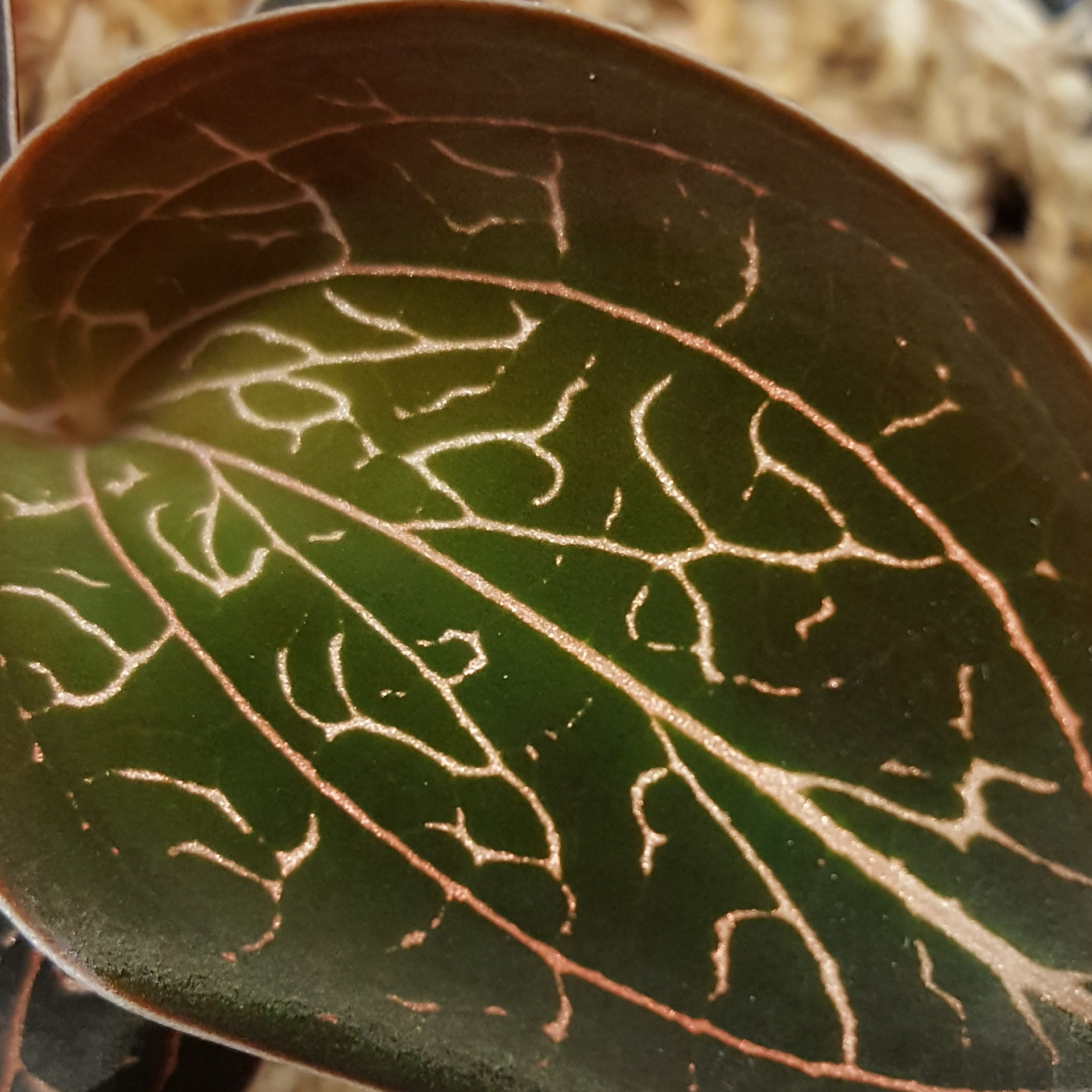 Hier möchte ich Ihre Aufmerksamkeit auf etwas Besonderes lenken: Anoectochilus chapaensis 'Sunrise' ist eine asiatische Juwelorchidee, die mit zunehmendem Alter immer mehr Rotfärbung ausbilden kann. Meiner Erfahrung nach wächst sie recht langsam und zeigt auch kein ausgeprägtes Wurzelwachstum. Als Bewohnerin des beschatteten Urwaldbodens sollte sie keiner direkter Sonne ausgesetzt werden. Sie mag erhöhte relative Luftfeuchtigkeit und sollte in einem lockeren, stets feuchten, nicht jedoch nassen Substrat gepflegt werden. Ich halte sie in reinem Sphagnum und habe damit gute Erfahrungen gemacht. Gelegentliche Kalkgaben scheinen ihr gut zu tun. Die zum Verkauf stehenden Anoectochilus chapaensis 'Sunrise' Jungpflanzen sind getopft und sind den in den Abbildungen gezeigten Exemplaren ähnlich. Am besten pflegt man sie bei normaler Zimmertemperatur, falls möglich in einem offenen Glasgefäß wie etwa einem Windlicht, einer breiten Vase, einem Terrarium oder etwas Vergleichbarem. Mit dem Düngen bitte vorsichtig sein und falls möglich nur Regenwasser zum Gießen verwenden.