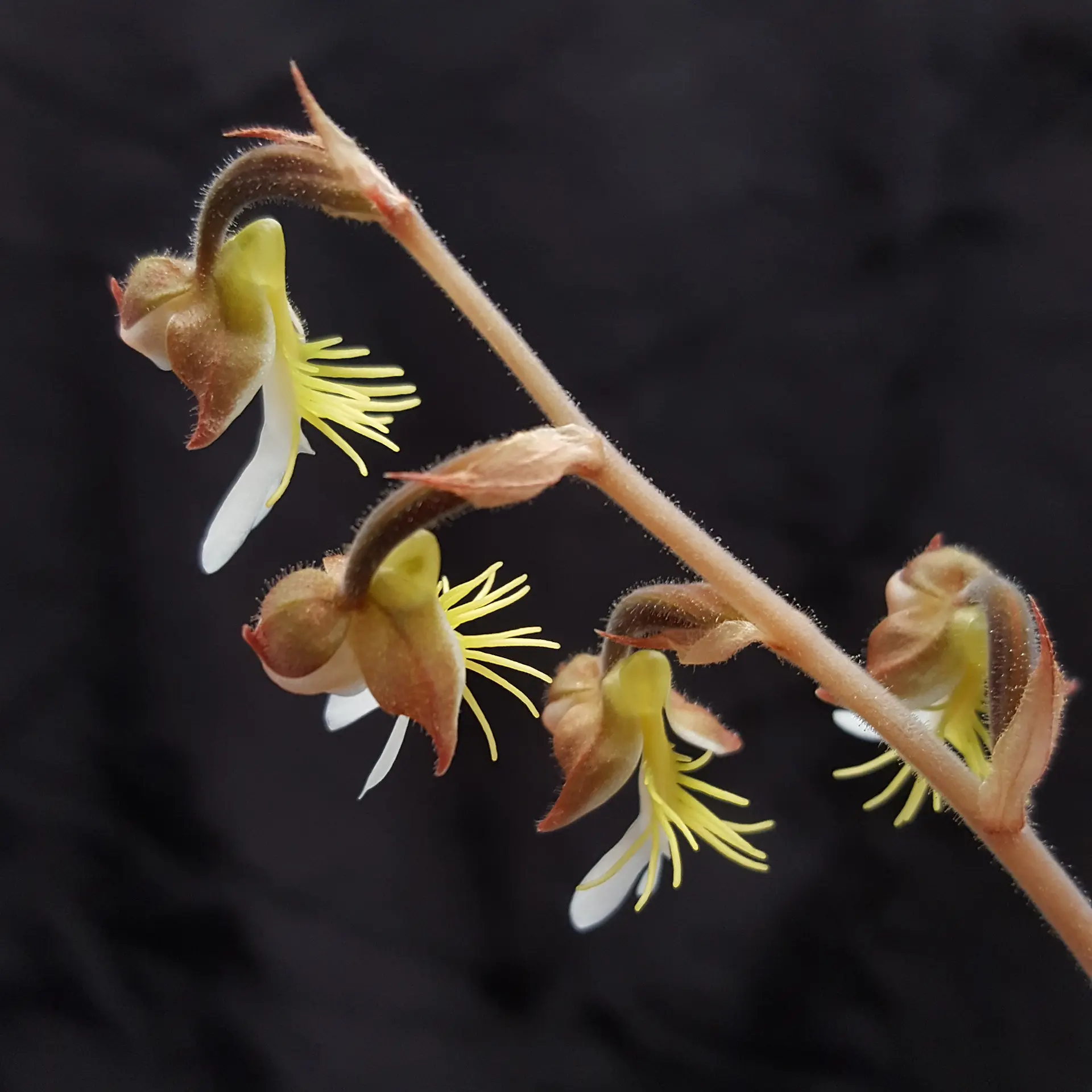 Silberne Blattadern zeichnen sich auf dunklen Blättern ab, deren Unterseite kräftig rötlich gefärbt ist - dies ist Anoectochilus formosanus 'Milky Way' ( Hayata 1914). Mit ihren herrlichen Blüten sticht sie unter den Juwelorchideen heraus! Diese Erdorchidee ist mehr als nur ein Schmuckstück - sie ist eine traditionelle Heilpflanze der asiatischen Medizin. Sie fühlt sich bei Zimmertemperatur wohl, gedeiht aber auch gut zum Beispiel in einem kühleren Schlafzimmer. 16 bis 19 Grad Celcius sind ihr Temperaturoptimum. Direktes Sonnenlicht gegebenenfalls durch Schattieren vermeiden. Sie stammt aus den schattigen, immergrünen Wäldern von Formosa - daher ihr Name. Zum Giessen falls möglich Regenwasser verwenden. Bitte mit Dünger sparsam sein, da diese Juwelorchidee kein schnelles Wachstum zeigt. Das als Substrat verwendete Sphagnum-Moos sollte immer feucht, aber keinesfalls nass sein. Die gezeigten Bilder sind beispielhaft, die Pflanze die Sie erwerben ähnelt den Abbildungen.us formosanus ist eine berühmte Medizinalpflanze die eher kühl bis temperiert zu pflegen ist.