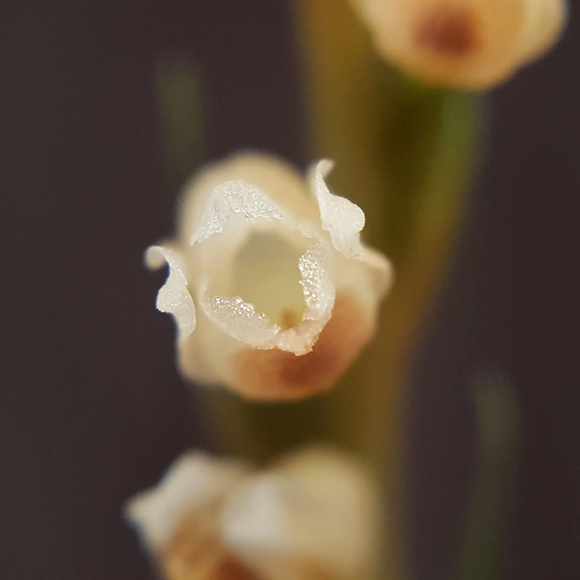 Goodyera pusilla 'Dreaming Track' Blume 1858 ist eine südostasiatische Juwelorchidee, die dem entsprechend temperiert kultiviert werden möchte. Unter den Juwelorchideen machen die Arten der Gattung Goodyera einen guten Anteil aus - dennoch sind nur wenige Goodyera-Arten im Handel. Die langgezogenen Blätter sind mehrfarbig und mit einem Netz aus hellen Adern durchwoben. Die Blüten der Goodyere pusilla 'Dreaming Track' sind zahlreich, jedoch klein. Goodyera pusilla 'Dreaming Track' möchte keine direkte Sonne abbekommen, da ansonsten die Blätter ausbleichen. Zum Gießen am besten Regenwasser verwenden. Flüssigdünger nur sparsam verwenden, da diese Juwelorchidee kein starkes Wachstum zeigt. Unterhalb des Blütenstandes bildet Goodyera pusilla 'Dreaming Track' einen neuen Spross aus dem letzten Knoten, so dass die Pflanze auf dem Substrat kriechend weiter wächst. Ein echter Augenschmaus und ein Muss für jede fortgeschrittene Juwelorchideensammlung. Die gezeigten Bilder sind beispielhaft, die Pflanze die Sie erwerben ähnelt den Abbildungen. Sie erwerben eine Jungpflanze.