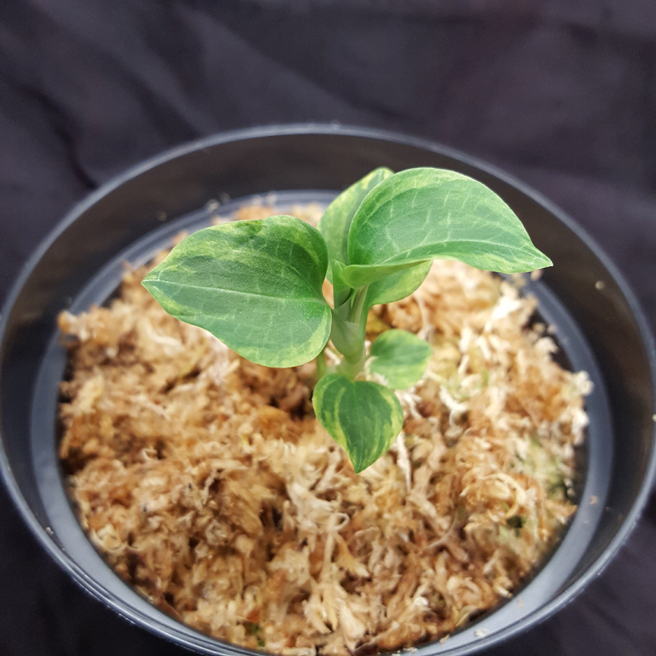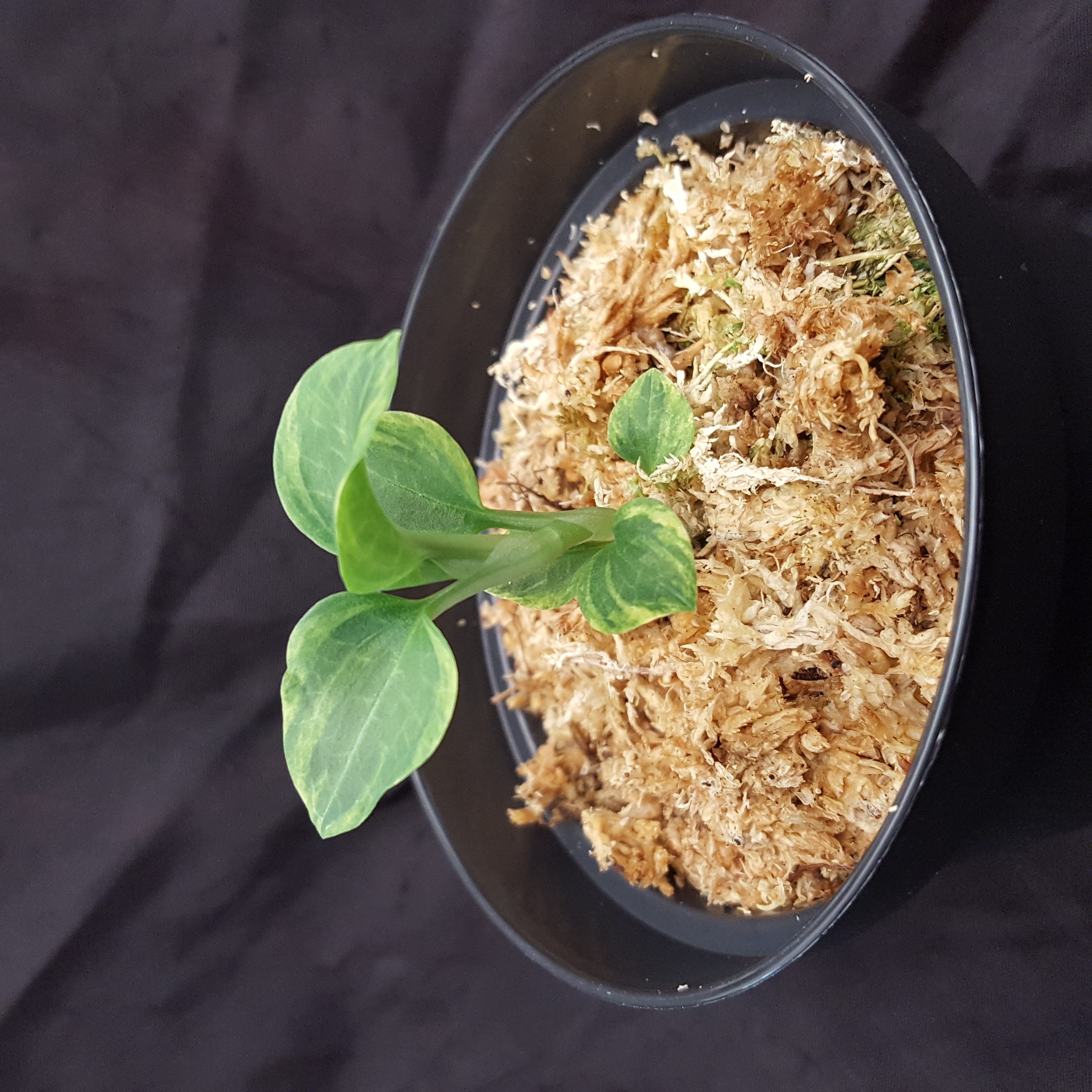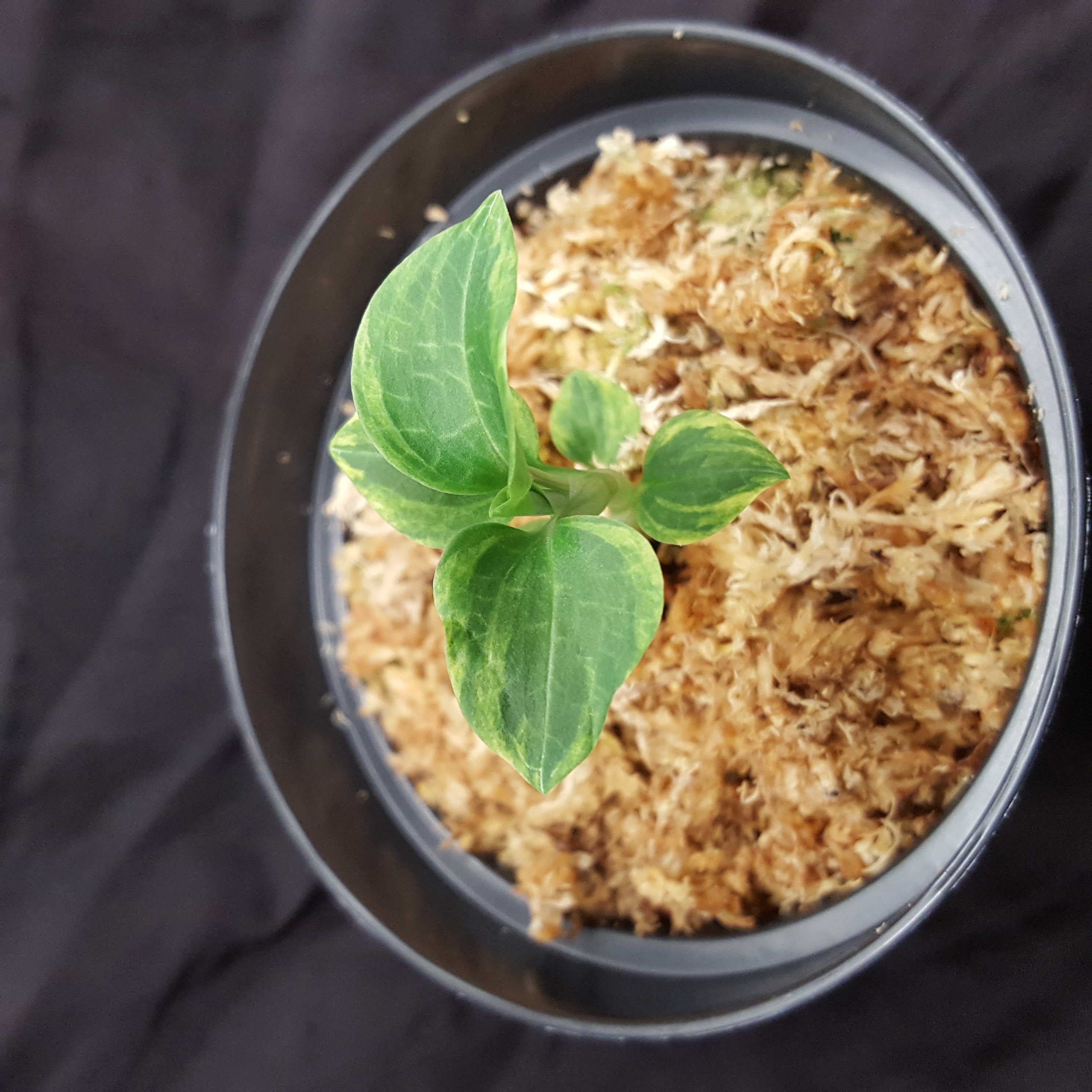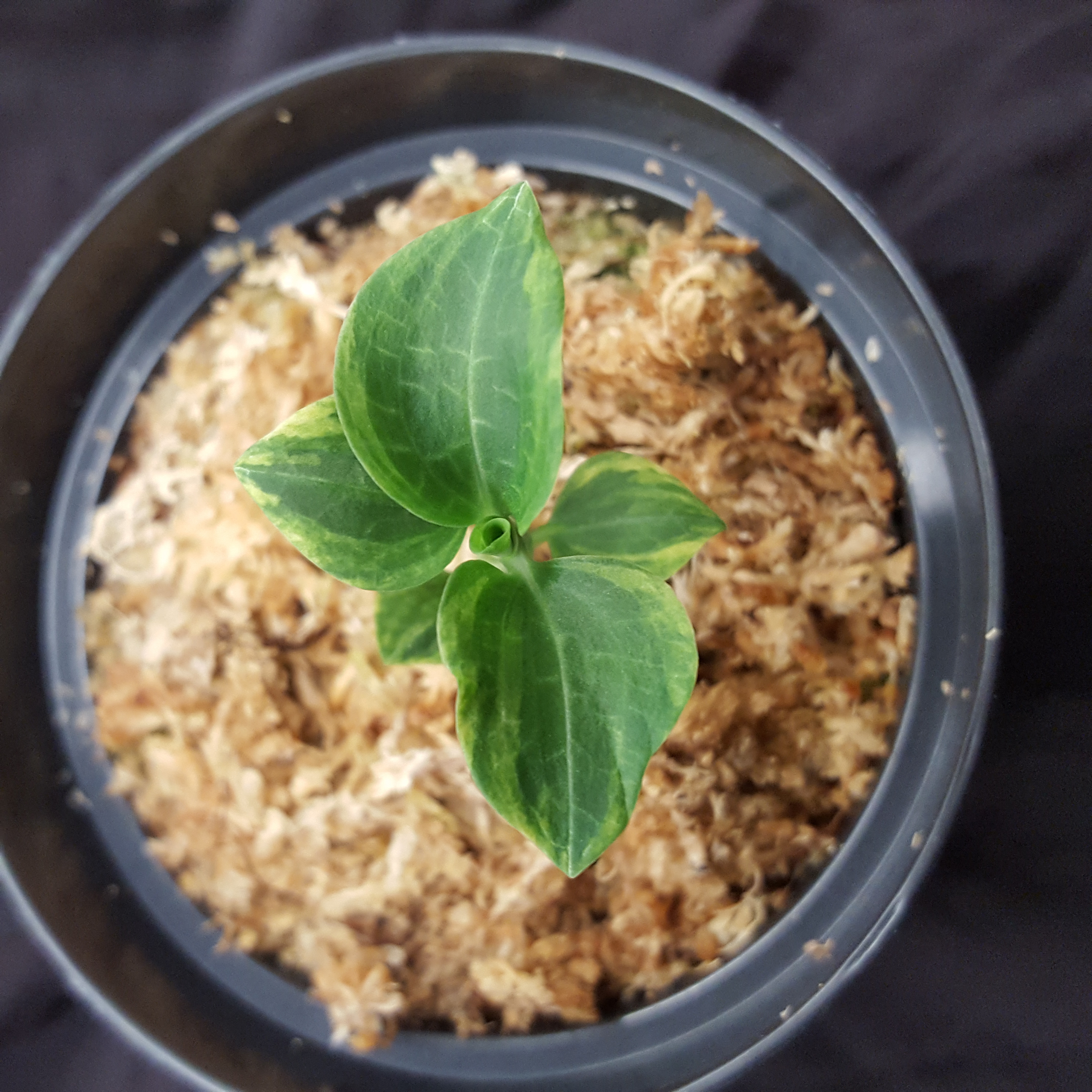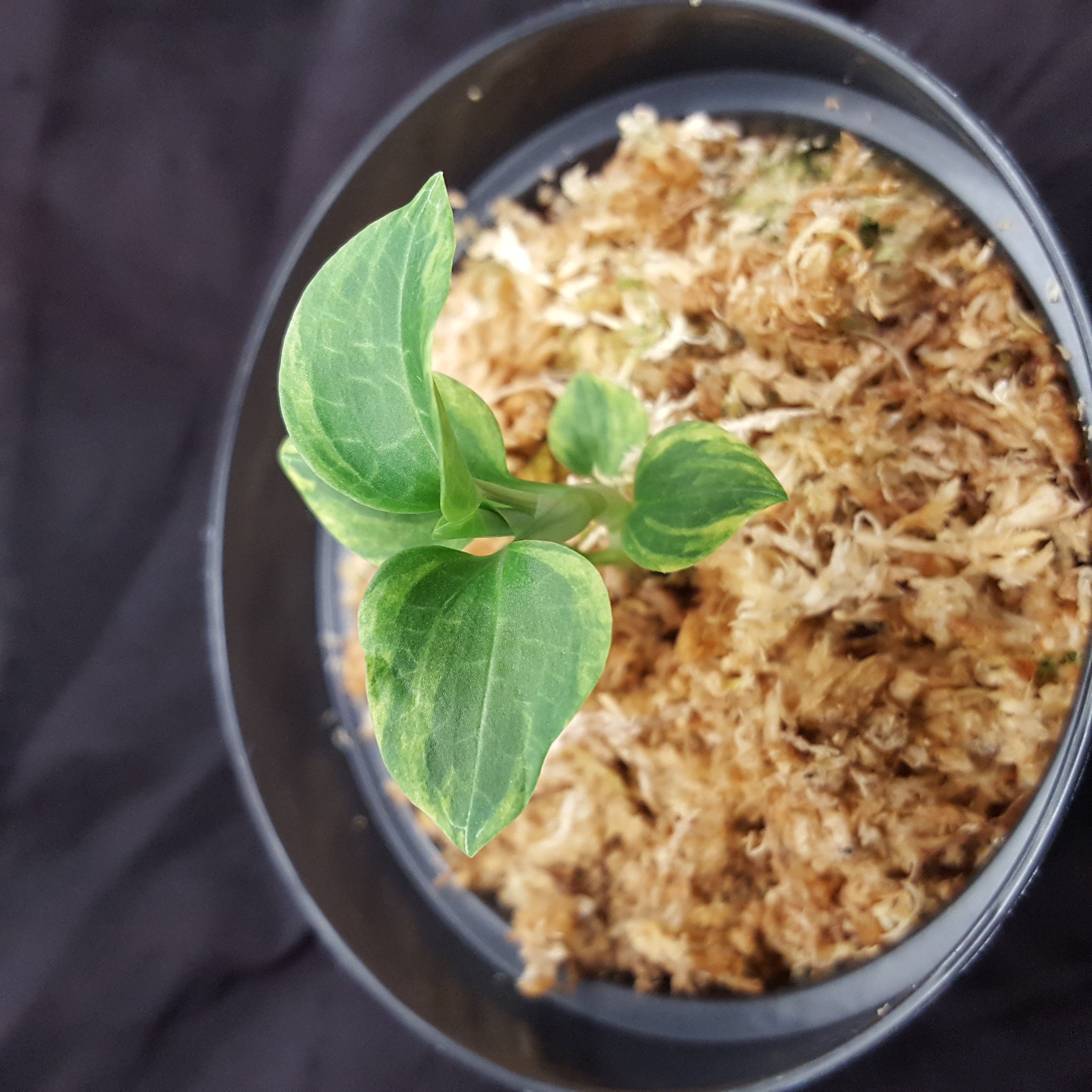 Ein selten angebotene panaschierte Juwelorchidee ist die Goodyera schlechtendaliana 'Painted Love' Rchb. f. 1850, die ich erst nach langer Suche in meine Sammlung aufnehmen konnte. Die Panaschierung der schön gezeichneten gelbgrün-grünen Blätter ist unterschiedlich, was jeder dieser Juwelorchideen ein einzigartiges, individuelles Erscheinungsbild verleiht. Die Stammform Goodyera schlechtendaliana zeigt ein weites Verbreitungsgebiet in Südostasien, dementsprechend anpassungsfähig ist diese Juwelorchidee. Sie ist allerdings eher im temperiert bis kühlen Bereich zu halten - allzu hohe Temperaturen bekommen ihr auf Dauer vermutlich nicht. Auch sie mag ein lockereres, feuchtes Substrat, Staunässe bekommt ihr nicht und führt zum Absterben der Wurzeln und somit der gesamten Pflanze. Direkte Sonne bitte vermeiden, da ansonsten das wenige vorhandene Blattgrün ausbleicht. Die gezeigten Bilder sind beispielhaft, die Pflanze die Sie erwerben ähnelt den Abbildungen.